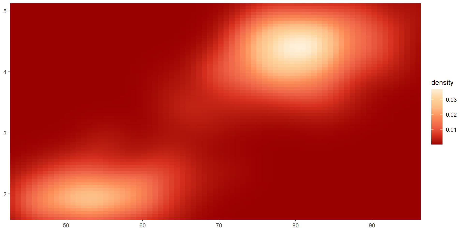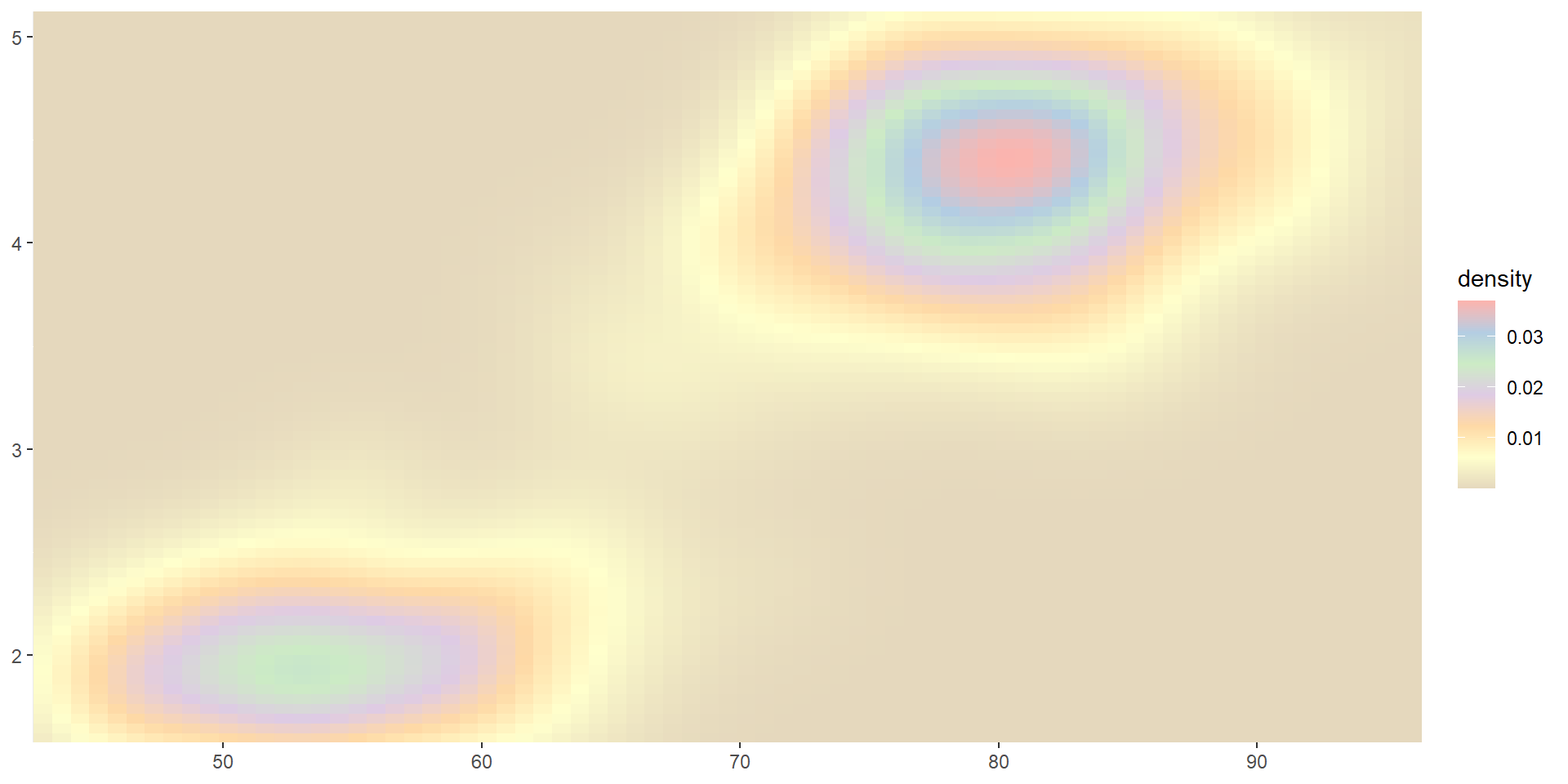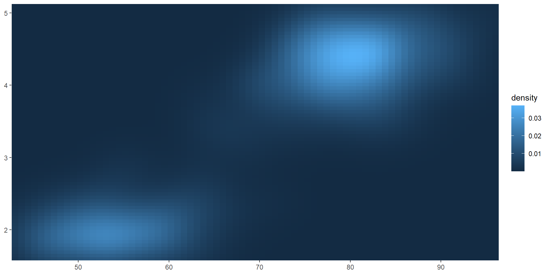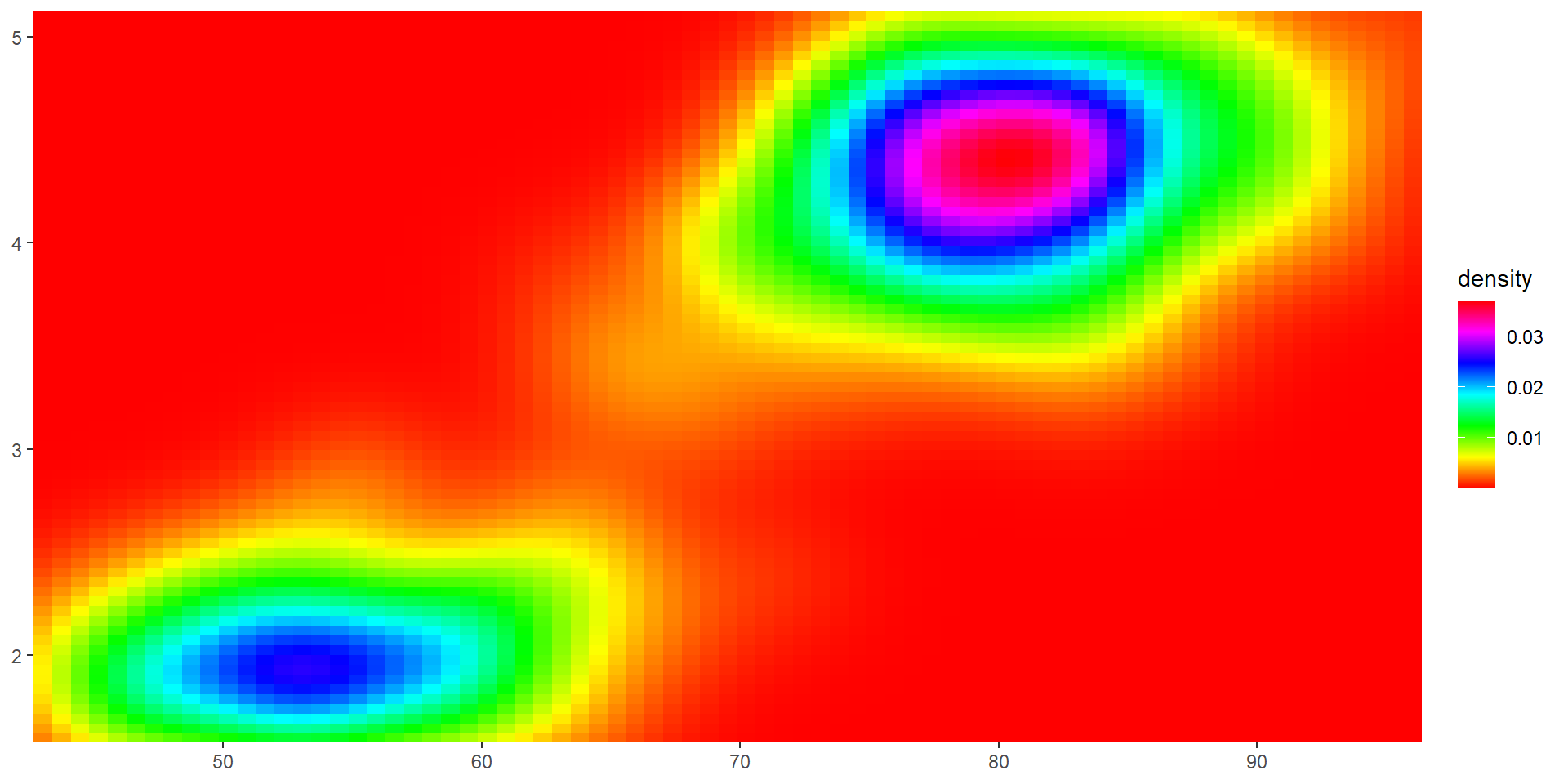 viridis color paletteserupt <- ggplot(faithfuld, aes(waiting, eruptions, fill = density)) +
