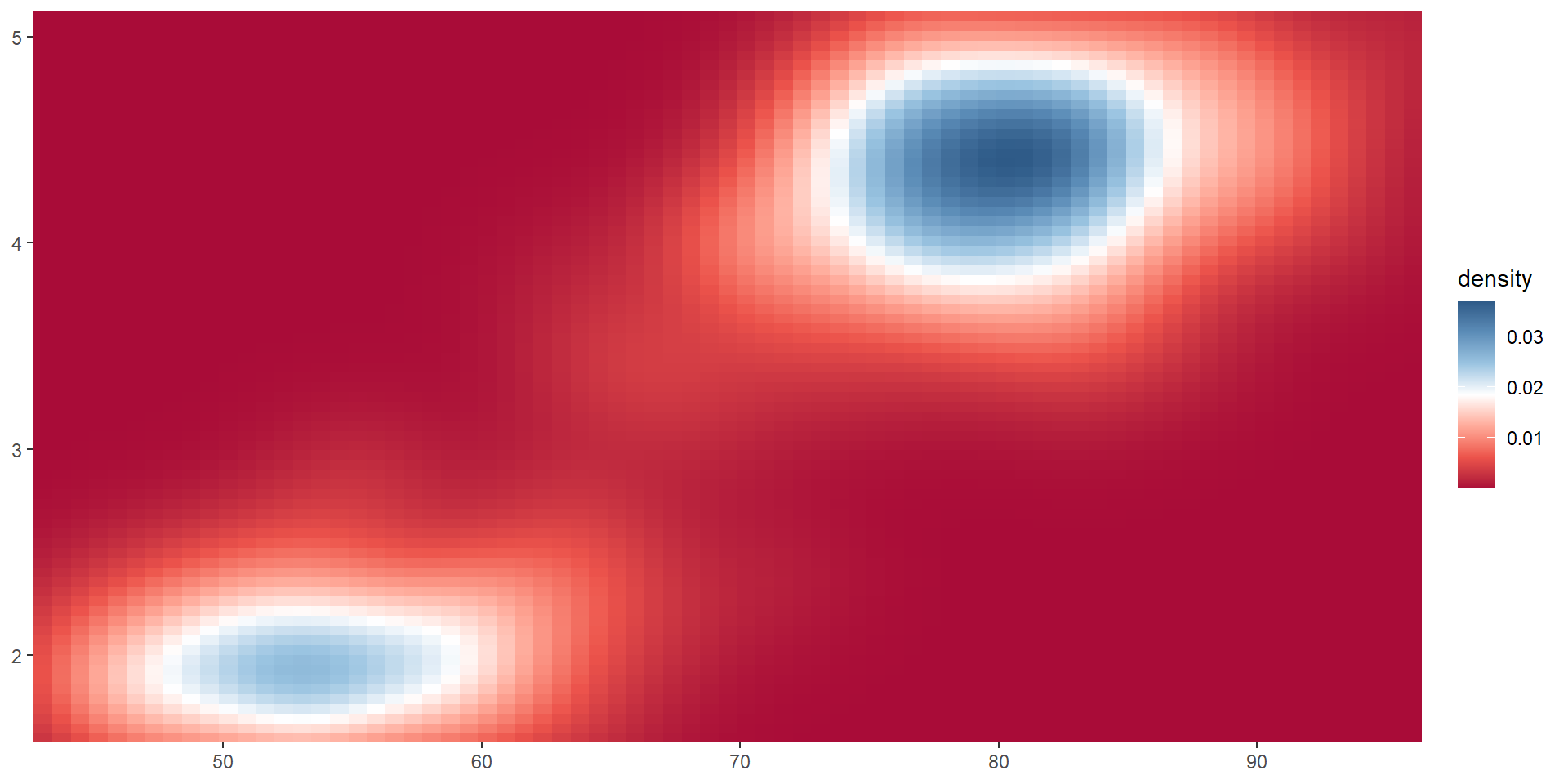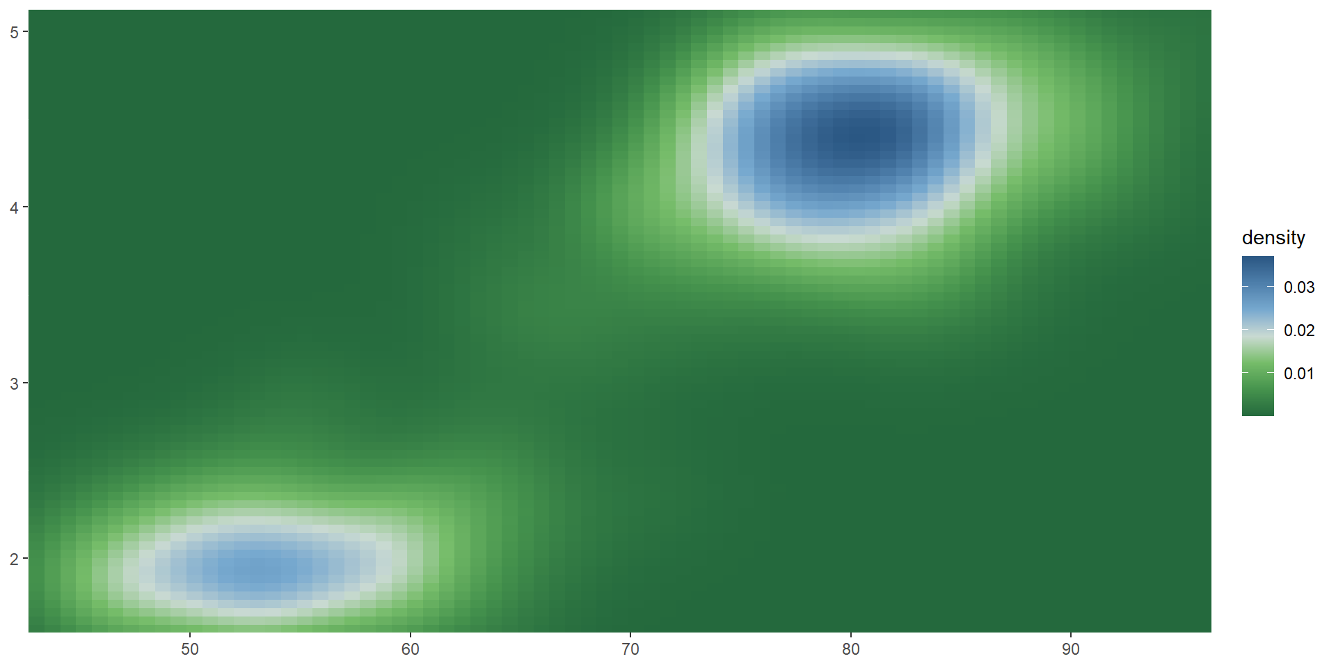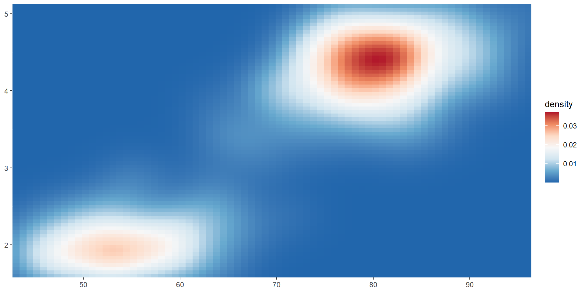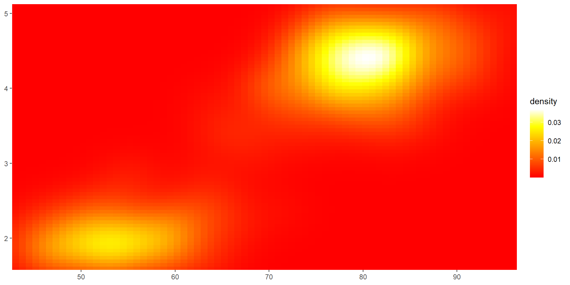 viridis color paletteserupt <- ggplot(faithfuld, aes(waiting, eruptions, fill = density)) +